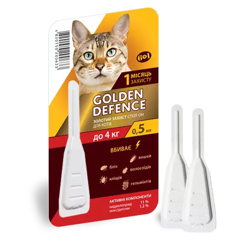Капли на холку Golden Defence от паразитов для кошек весом 0,5-4 кг