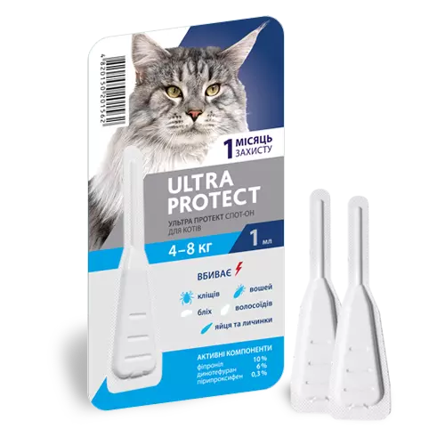 Капли Ultra Protect от блох и клещей для кошек весом 4-8 кг